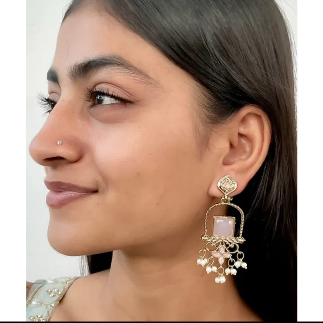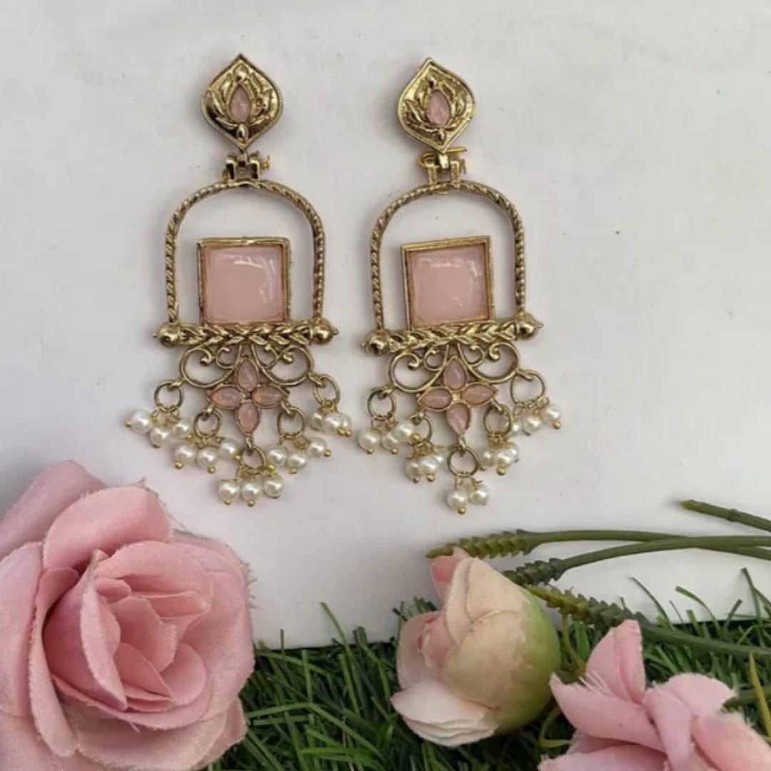 Name : Plated Artificial Stones and Beads Square Oxidised Drop Earrings